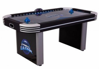 Снабжен двумя вентиляторами, которые подают воздух через перфорированные отверстия на игровом поле, создавая идеальную воздушную подушку для быстрого полета шайбы.
