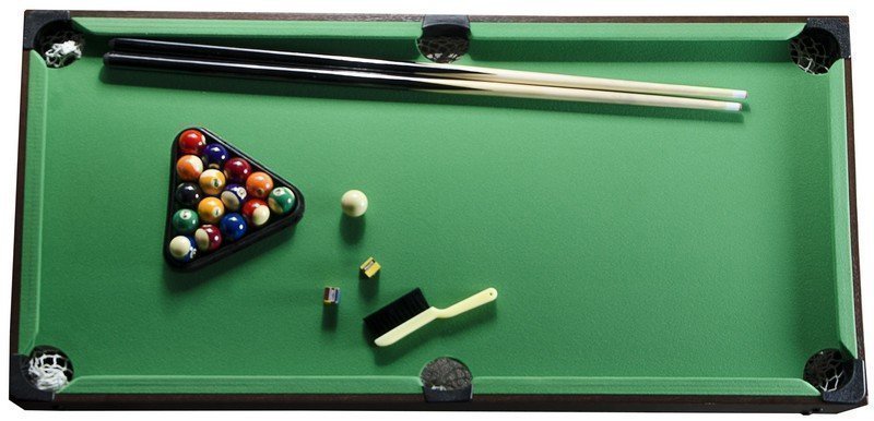 Бильярд (пул), габариты: 117 х 56 х 68,5 см (включая уровень ног), игровое поле: 114 х 53, МДФ 5 мм.