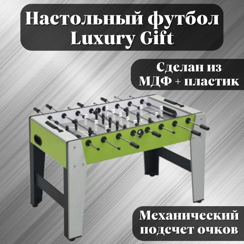 Настольный футбол кикер Luxury Gift на любом празднике будет пользоваться успехом и не даст никому заскучать. Мини-футбол выполнен из высокопрочного МДФ, что гарантирует долговечность использования. Небольшие размеры позволят разместить кикер в легковом автомобиле для путешествия на дачу или в гости. За ходом игры помогают следить механический счетчики голов. В комплекте идут инструменты для сборки, инструкция и мячи для игры.