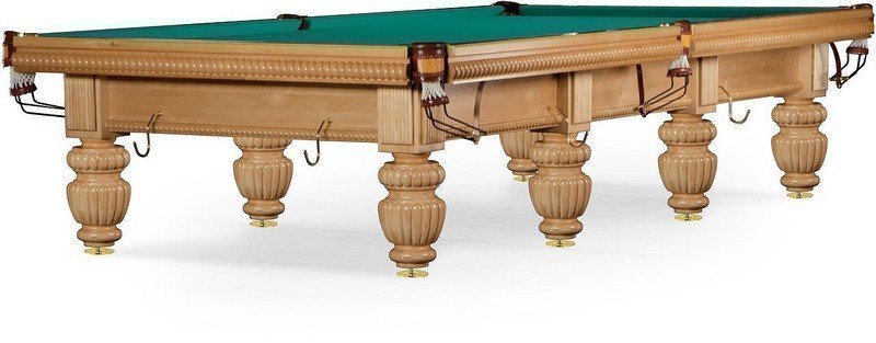 Название этого стола возвращает нас в эпоху Старой Англии - родины незыблемых традиций и вековых жизненных укладов. Различные варианты цветовых решений данной модели позволят ей легко вписаться в любой интерьер. Четкие прямые линии бортов и рамы создают ощущение твердости и устойчивости стола. Массивный каркас из тщательно выбранных и хорошо просушенных пород дерева, состоящий из внешней рамы и внутренних связей в виде решетки, обеспечивает стабильность конструкции. Каменные плиты из натурального сланца Ардезия толщиной 45 мм в основе игрового поля, покрытые сукном Challenger из камвольной шерсти, создают абсолютно гладкую, ровную поверхность, что позволяет шару катиться быстро и точно, в соответствии с заданным направлением. Еще одна важная составляющая стола - резина Speed Ball, профиль которой выполнен в строгом соответствии с параметрами шаров диаметром 68 мм весом 285 г., дает игрокам постоянство игры, точный винт и хороший отскок от борта при каждом ударе. Крепость традиций, славная история и верность любой игре – вот, что чувствуют люди, игравшие на этом столе. Оборудование соответствует стандартам и одобрено Федерацией Бильярдного Спорта Российской Федерации