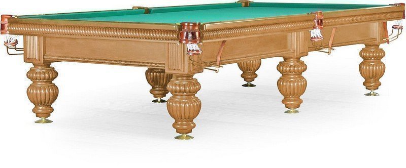 Массивный каркас из тщательно выбранных и хорошо просушенных пород дерева, состоящий из внешней рамы и внутренних связей в виде решетки, обеспечивает стабильность конструкции. Каменные плиты из натурального сланца Ардезия толщиной 38 мм в основе игрового поля, покрытые сукном Challenger из камвольной шерсти, создают абсолютно гладкую, ровную поверхность, что позволяет шару катиться быстро и точно, в соответствии с заданным направлением.