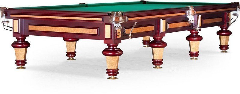 Перед вами стол для игры в русскую пирамиду- «Денди». Этот щегольский стол выполнен из массива дерева твердых пород с эффектными вставками из капы. Он несомненно оживит Вашу бильярдную, придаст ей модный вид, расскажет гостям о тонком вкусе ее хозяина.Стол оснащен лузами с выкатом со скобами специальной конструкции, обеспечивающими их прочность и износостойкость. В ножках стола установлены металлические домкраты с болтом увеличенного сечения, позволяющие правильно установить стол на полах любого типа. Основа игрового поля состоит из пяти каменных плит Ардезия толщиной 45 мм, что обеспечивает идеально ровную поверхность стола.Вы получите истинное удовольствие от игры за этим столом!