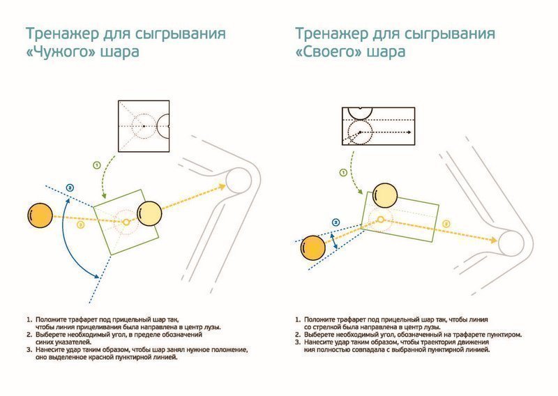Если вы начинающий игрок в бильярд, то данный комплект тренажеров существенно облегчит вам жизнь. Тренажер наглядно показывает геометрию удара и поможет вам понять, где находится воображаемая точка соударения шаров. Шероховатая внутренняя поверхность трафаретов позволяет надежно держаться на сукне, не меняя положения во время тренировки. Легкий, компактный комплект тренажеров станет неотъемлемой частью ваших тренировок.