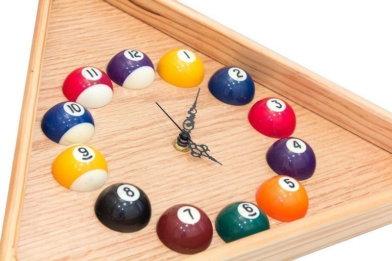 Традиционные настенные часы на бильярдную тематику. Снабжены секундной стрелкой, оснащены кварцевым механизмом.