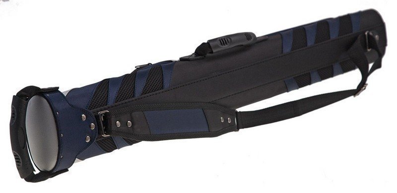 Защищает кий от механических повреждений и воздействий окружающей среды. Регулируемый наплечный ремень снабжен специальной подкладкой для облегчения давления на плечо. Тубус снабжен ручкой, позволяющей нести кий иным образом карманом для экстендера длиной не более 39 см. В дно тубуса встроены амортизаторы для более мягкого помещения кия в тубус, отделения разделены между собой жестким пластиком. Присутствует отделение для дополнительного шафта. Отделения разделены жестким пластиком.Внутренняя длина отделений - 89 см.