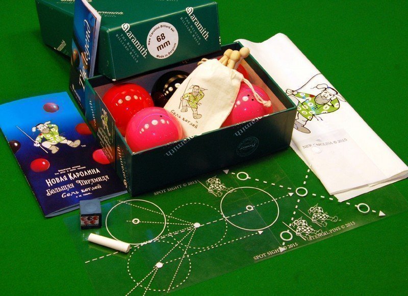 Набор поможет Вам, Вашим гостям и друзьям вспомнить старинные классические игры на большом столе. Для игры в "Большую Пирамиду" Вам нужно всего лишь добавить эти шары к стандартному комплекту, а для "Семи Кеглей" в комплект включены сами кегли и удобный трафарет для разметки.