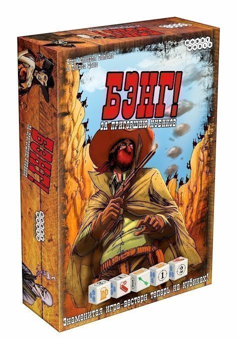Похоже замес будет неслабым?Да, вы не ошиблись, ведь перед нами новая версия мега-популярной ролевой игры «Бэнг!», которая перенесёт нас в мир Дикого Запада. В версии «Бэнг! За Пригоршню Кубиков» остались все те же персонажи и роли, однако карты сменились точными выбросами кубиков. Ну, и еще один неплохой бонус для истинных фанатов – теперь играть может компания из восьми и трех человек.