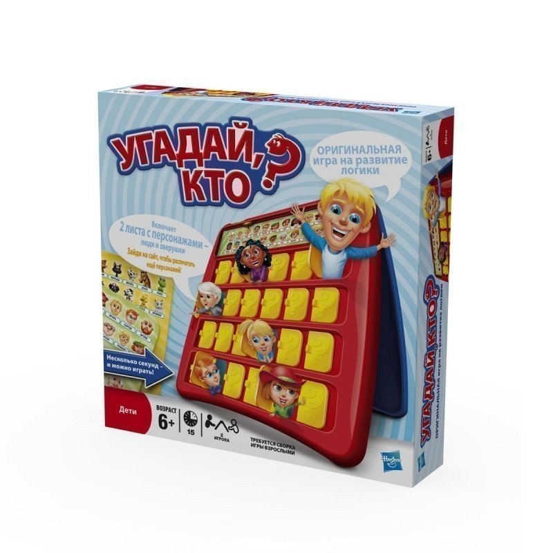 В 'Угадай, кто?' не нужно ничего рисовать, т.к. все портреты уже готовы и находятся перед глазами. На столе выставляется пластиковая подставка, где располагаются 20 портретов людей. Один из участников загадывает персонажа, а другому нужно будет задавать различные вопросы, чтобы определить его. Есть всего лишь пять попыток, чтобы достигнуть цели, почему и к вопросам нужно подходить тщательно. Действовать наугад здесь не получится, ведь для победы потребуется пять раз правильно назвать персонажа. Вдобавок, отвечающий может говорить только два слова – «Да» или «Нет», что значительно осложняет ситуацию.