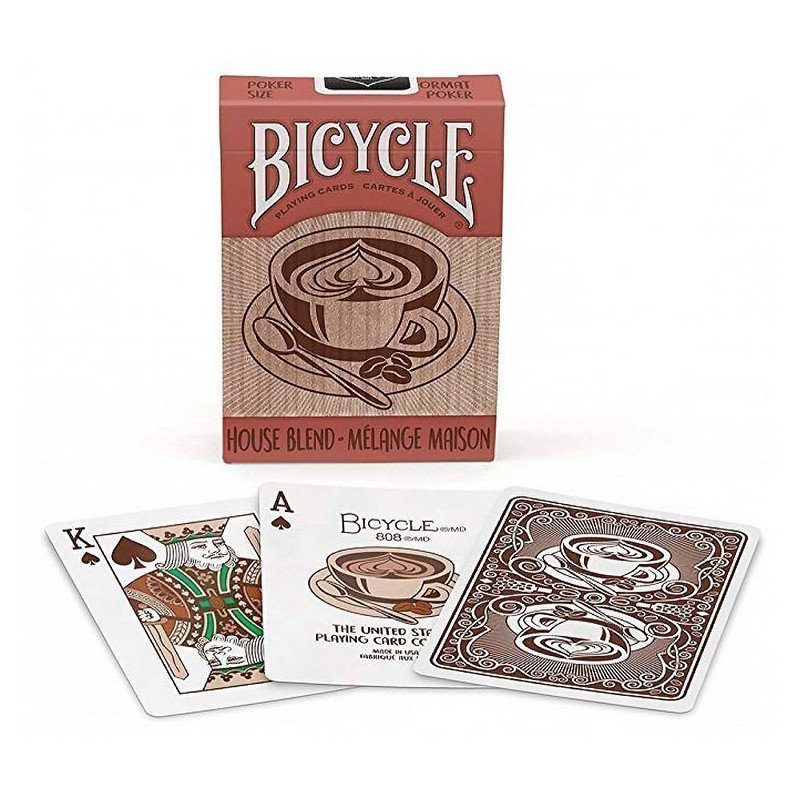 «Bicycle House Blend» - дизайнерская колода карт для тех, кто сочетает в себе любовь к карточным играм или фокусам и к кофе. Стиль оформления получился настолько атмосферным, что, кажется, держа колоду в руках, на самом деле ощущаешь аромат свежеобжаренных кофейных зерен, даже если нет рядом чашечки ароматного напитка. Важно, что за оформлением производитель не забыл позаботиться и о качестве – оно как всегда безупречно.