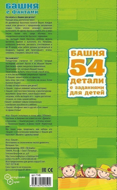 Если вашим детишкам уже приелась стандартная настольная игра Башня, а Фанты все уже знают наизусть, то есть новенький и интересный вариант – купить Башня с заданиями для детей. С ней они надолго «застрянут» в своей комнате с друзьями, откуда вы будете слышать только возгласы радости и громкий смех.