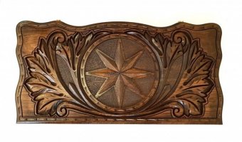 Красота необходима всемВ оформлении Нарды резные Звезда используется 8-ми конечная звезда, которая расположилась в центральной части лицевой поверхности. Но это не единственное украшение – везде можно видеть замысловатые узоры. На обратной стороне доски имеется поле для игры в шашки, размером 8х8 клеток. Изнутри, в середине, вырезан цветок, а каждая отдельная ячейка подчеркивается треугольником.