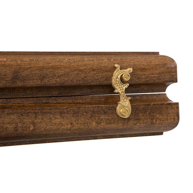 Надежно и красивоПроизводитель позаботился, чтобы человек, купивший его изделие, остался доволен на долгое время. Этому способствует использование цельного массива дуба, из которого вырезаются обе створки. Данная древесина достаточно прочная, чтобы выдержать небольшие удары, а к тому же долговечная, особенно при аккуратном обращении. Сверху наносятся несколько слоев лака, что улучшает характеристики, позволяет отталкивать воду и делает внешний вид более привлекательным. Петли и крючки делаются из чистой бронзы, благодаря чему могут прослужить очень долгое время.