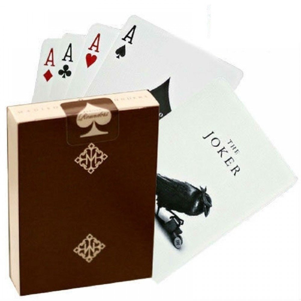 Красивые, но при этом не вычурные карты - «Ellusionist Madison Rounders Brown». Благородный коричневый цвет, напоминающий древесный, подчёркивает изысканность изделия. В то же время за это не нужно переплачивать, так как стоимость максимально доступная. На лицевой стороне всё по классике – на белом фоне принт и обозначения «веса», что позволяет легко и быстро разбираться во время игр.