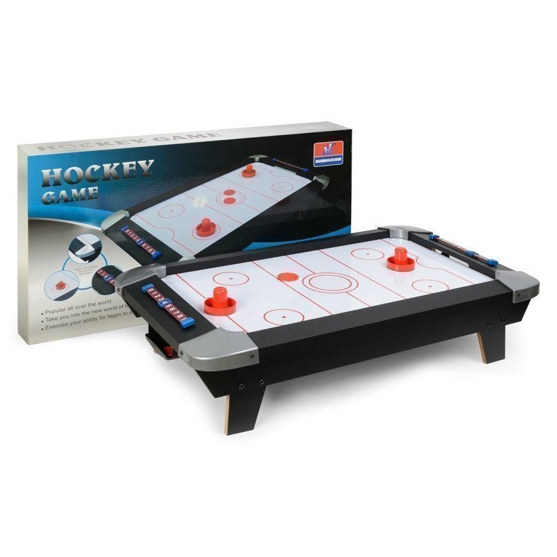 Конструкция игры устойчива и надежна. Поле работает от батареек. Электронная составляющая аэрохоккея находится в столе, что делает его безопасным для детей всех возрастов.