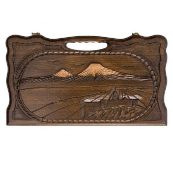 Снаружи мастер нанес рисунок – монастырь Хор Вирап, расположенный на фоне библейской горы Арарат. Это рисунок словно переносит вас в далекую, но такую привлекательную Армению с ее природной красотой. С обратной внешней стороны расположилось поле для игры в шашки, разлинованное соответствующим образом. Фишки для игры удобные и легко берутся двумя пальцами. В нижней их части есть тряпичная прокладка, предотвращающая появление царапин на доске.