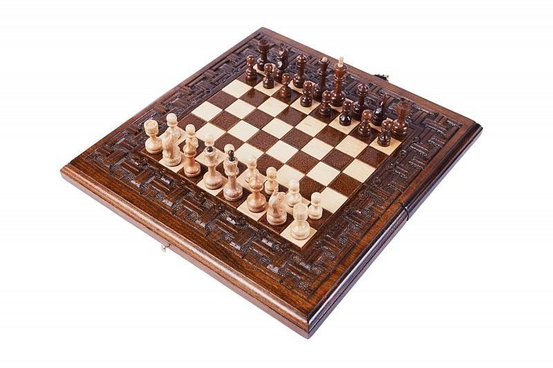 Один из самых красивых комплектов 2-в-1 в нашем ассортименте – набор шахматы + нарды «Армянский Узор». Элегантный и сдержанный, но при этом впечатляющий качеством выполнения и декоративной отделки, он может стать прекрасным подарком коллекционеру настольных игр. Доска, сделанная из натуральной буковой древесины, по краю украшена традиционным армянским узором. Фишки и фигуры классические. Они оснащены подложкой, защищающей доску от царапин. Также доска оснащена высококачественной и надежной бронзовой фурнитурой и покрыта лаком.