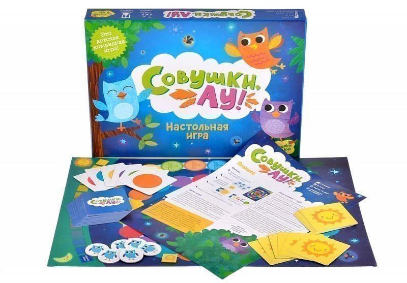 Ну и где тут командная игра?Смысл весь в том, что если перед вами стоят другие совушки, то вы можете их перепрыгивать. Например – у вас желтая карточка, а ближайшая занята совой, тогда вы перелетаете ее и ставите фишку на другую желтую. Таким образом, преодолевается расстояние гораздо большее и увеличивается шанс успеть до рассвета. Точнее, нужно это выполнить до того, как фишка с солнышком дойдет до последней отметки. Если хоть 1 совушка не успеет долететь до гнезда, то вся команда проигрывает. Поэтому нужно стараться не только двигать вперед, а создавать последовательности из сов, занимая разные цвета, чтобы можно было их перепрыгивать.