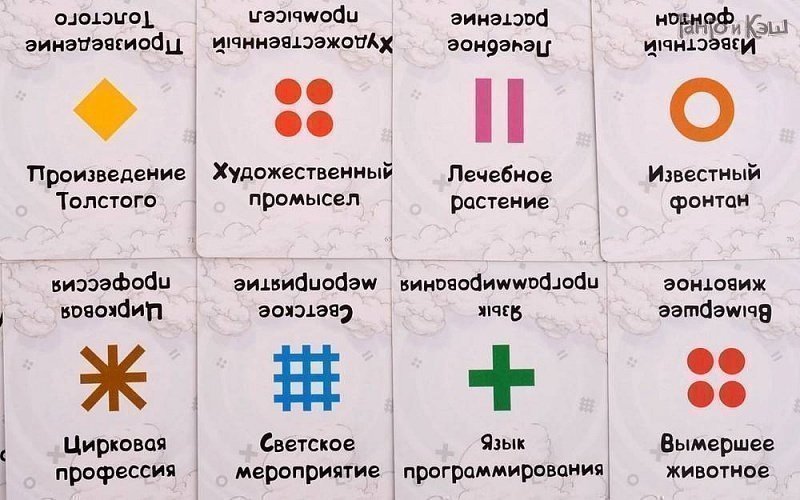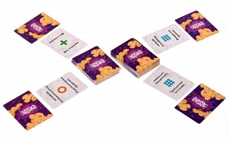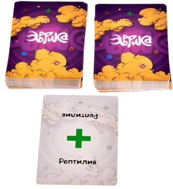 Кроме символа на карточках есть слово-задание. Участник должен постараться первым назвать то, что указано на карточке соперника. Тогда можно будет забрать ее себе, что потом принесет победные очки. В Эврика Игнис присутствуют специальные карточки – двойные. Если она попадается участнику, нужно выложить ее в центр, а те, у кого есть аналогичные символы, начинают поединок.