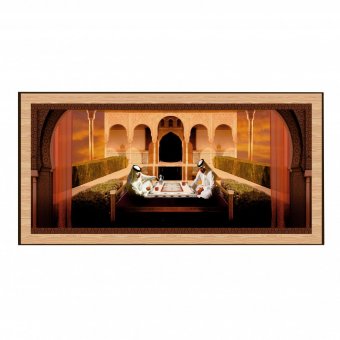 Каждая комбинация показывает количество лунок, на которое можно передвинуть фишку. Не стоит думать, что чем большее число выпало, тем лучше. Конечно в некоторых случаях это так и есть, однако бывают ситуации, когда только дубль единичек может спасти вас от неминуемого проигрыша. Нарды традиционно изготовлены из дерева, а в качестве украшения выбрано тематическое изображение - «2 персидских шейха за игрой в нарды».