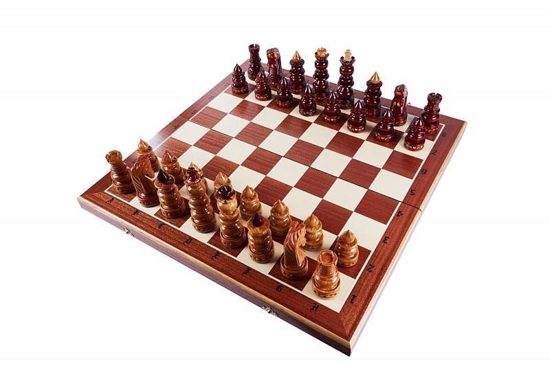 Основная особенность модели шахмат 'Византийские' – фигуры, выполненные в очень оригинальной стилистике. Удивляя своей необычностью и изысканностью, они, несомненно, будут украшать и стол, и помещение, где они находятся. Доска же выполнена в вполне традиционном, лаконичном стиле. Она довольно массивна и увесиста, но долговечна за счет того, что ее половинки скреплены между собой надежными алюминиевыми петлями. Внутренняя часть доски выполнена в виде лотка с ячейками под каждую отдельную фигуру.