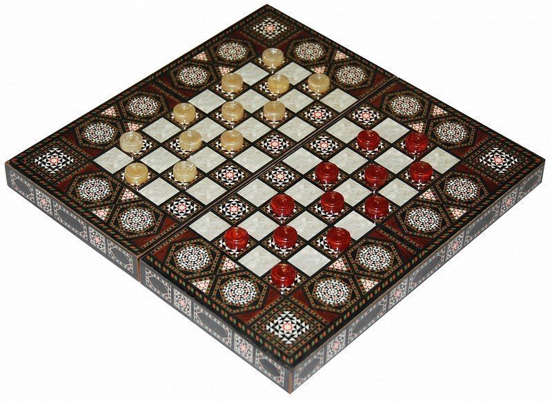Как известно – нарды считаются не только развлечением, но и возможностью развить собственное логическое мышление. Конечно, некоторое влияние фортуны здесь необходимо, однако именно от грамотного продумывания собственных действий зависит насколько успешным будет исход партии. Когда-то в Персии, нарды были доступны только Падишахам, которые могли проводить за ними бесконечно количество часов, выбирая себе соперников из числа своих придворных и советников. Чтобы была возможность отвлечься от нард, здесь предусмотрено поле для игры в шашки.