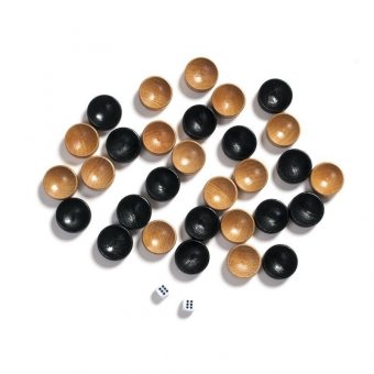 Игровое поле оснащено лузами для фишек, которые создают правильную компоновку перед началом партии. В комплект входят две игральные кости и 30 фишек чёрного и белого цветов.