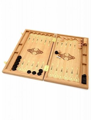 Подарочный набор нард российского производства, украшенный инкрустацией в виде Жар-птицы, выполненной в технике маркетри. Массивная, крепкая доска сделана из натуральной дубовой древесины и покрыта защитным лаком. Ее надежность и долговечность обеспечивается износостойкой нержавеющей фурнитурой. На внутренней стороне доски, кроме игрового поля, имеются также отделения для складывания фишек, вышедших из игры. Это делает игровой процесс значительно более комфортным.