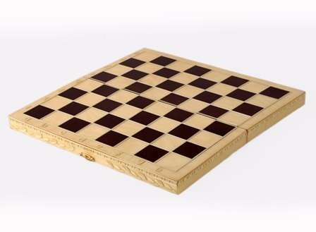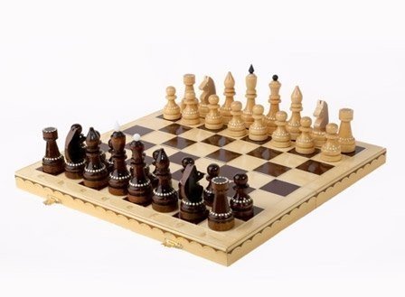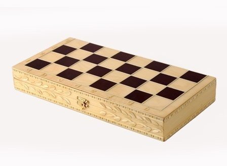 Красота в каждой деталиДля производства данного экземпляра использована береза, древесина которой отличается высокой прочностью и долгим сроком службы. Но отличительной стороной тут является внешнее оформление, чем она и выделяется на фоне других шахмат обиходных. В первую очередь, это касается боковых граней доски, где вырезано что-то наподобие лаврового венка. Далее стоит обратить внимание на фигуры, форма которых осталась стандартной, но вот добавление белой каймы смотрится очень кстати. Особенно это заметно на черном цвете, создающим особенный контраст. Крючок для закрывания тоже стал необычным и фигурным, что ничуть не сказалось на его функциональности.