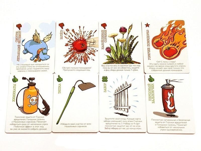 Главная цель каждого участника в Помидорном Джо – набрать наибольшее количество помидоров, до того как начнутся торги. Игра происходит пошагово и, в свою очередь, нужно перекладывать помидоры из огорода в корзину. По мере ее наполнения можно перемещать накопленное в склад, однако – вы должны постоянно держать в уме количество собранного «товара». Причем, дело усложняется тем, что если счет будет потерян, то нельзя пересчитывать накопленное. В случае ошибки, когда помидоров в корзинке будет меньше указанного количества, то они будут перемещены в город, а не на склад.